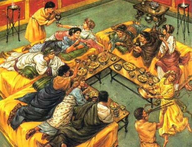 Банкеты были частыми, особенно летом, давая возможность хозяину продемонстрировать гостям свое богатство. Здесь вы можете подавать экзотическое мясо, такое как жареный павлин, язык фламинго или мозги фазана на серебряных или бронзовых блюдах.