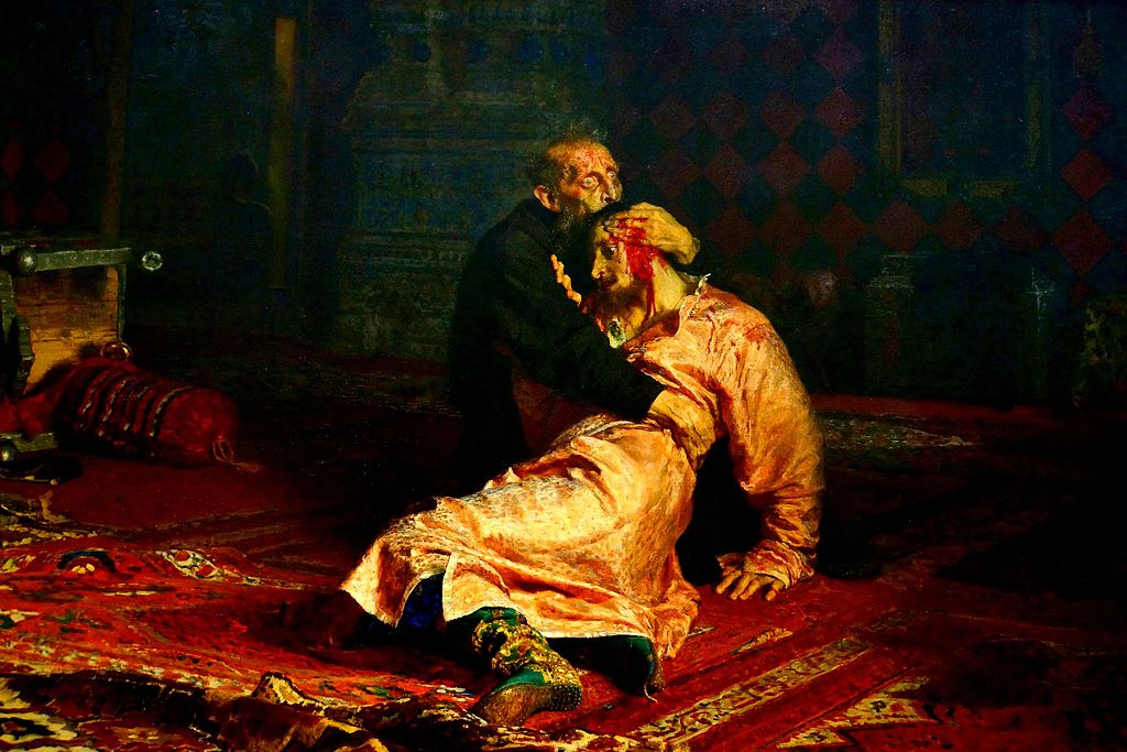 Картина Ильи Репина, изображающая Ивана IV, обнимающего его сына, убитого в ярости.