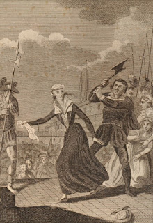 Есть некоторые разногласия в исторической записи фактических событий казни. Английская версия, записанная намного позже, представляет Блаженную Маргарет, отказывающуюся поставить голову на блок. После того, как палач ударил ее один раз, она описывается как поднимающаяся и убегающая, а палач бежит за ней, ударяя ее несколько раз. Современный отчет французского посла Юстаса Шапюи кажется гораздо более надежным. Хейл объясняет: