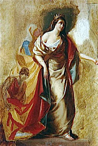 В картинах XVII века, например, мы можем видеть яркие цвета, синие и красные. Это нерешенное; в стиле барокко, характеристики которого - использование теплых и ярких цветов, от розового до синего; мы также отмечаем, что с ним связан красный цвет. à император. Этот нож также известен многими картинами с 17 по 18 век, и на большинстве картин XIX века мы замечаем ее коричневые волосы и ее золотой цвет лица. Во всех этих картинах именно художественный стиль художника определяет представление персонажа.