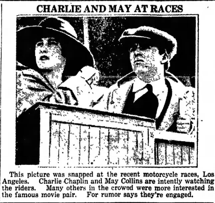 Мэй Коллинз была нанята Сидни Чаплином, братом Чарльза, в качестве секретаря, который сопровождал их в Европу. Чарльз, все еще грустный в конце романа с Флоренс, начал с ней отношения. Флоренс даже пришла одобрить их роман, что было бы хорошо для комика. По словам Макса Истмена, Мэй была из тех девушек, которые были созданы, чтобы жениться и иметь детей. Но не то, что Чаплин должен был продлиться.