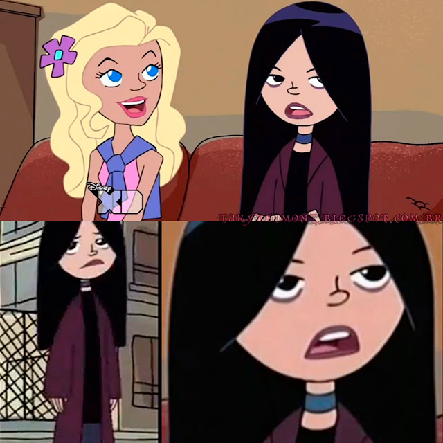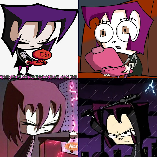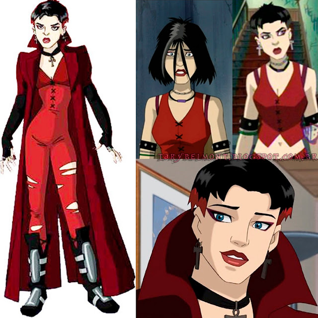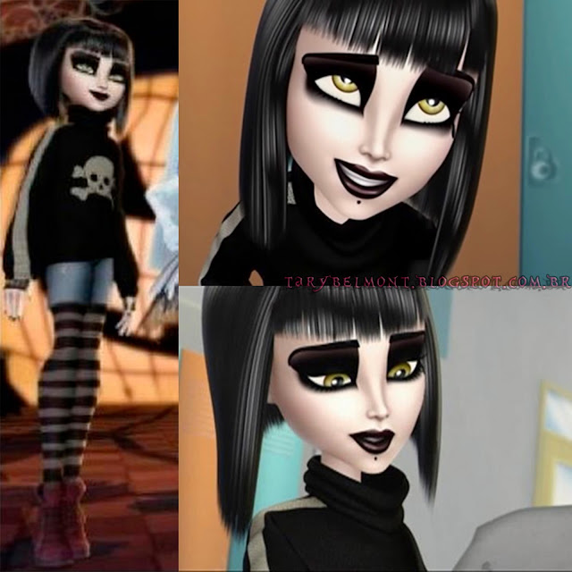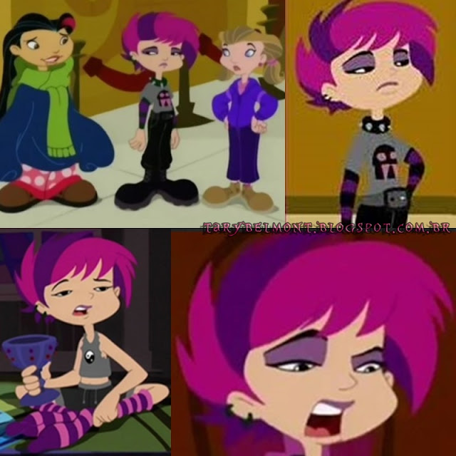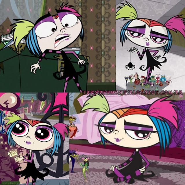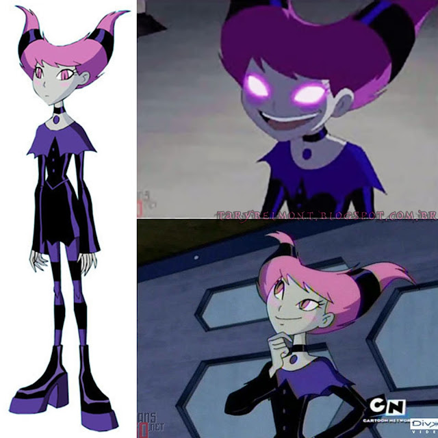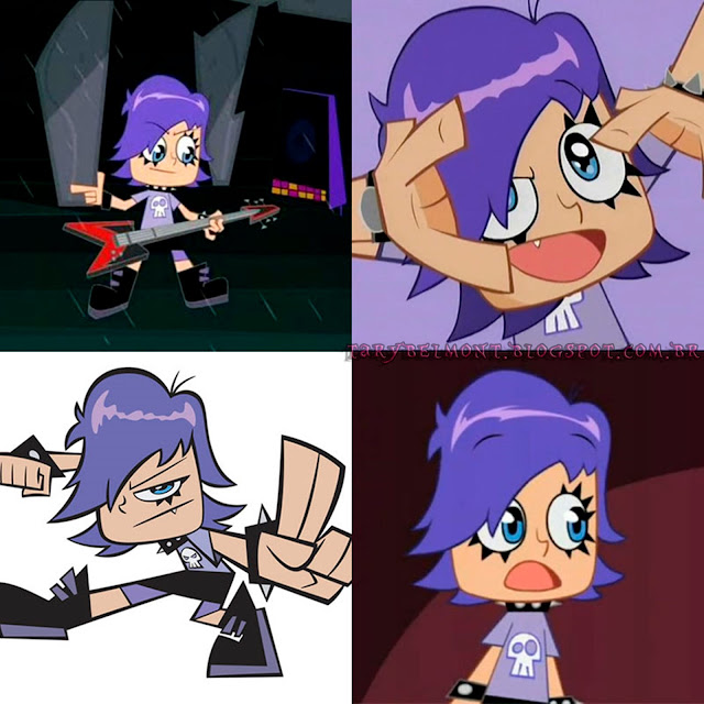 Выглядит, как девушка-подросток, владеет серую бледную кожу, румяные щеки и розовые волосы, уложенные по форме, как рога или подкова с неким подобием резинок и пышную чёлку. Также владеет длинные ресницы и розовую радужную кожицу глаз. Одета в готическую одежду. На лапти надеты колготы, окрашенный в чёрные и пурпурные полосы, втомжедухе чёрные туфли на высочайшей подошве.