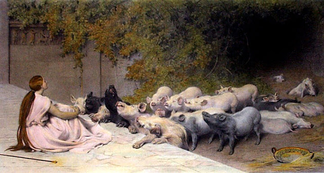 NOTA: Odisseu passou alguns anos na ilha de Circe. Neste tempo eles tiveram três filhos: Ágrio, Latino e Telégono (BRANDÃO, 1986, p. 160).